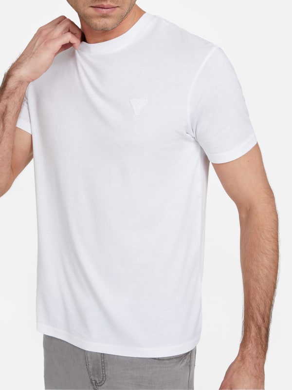 Класична футболка з контрастним логотипом та оздобленням. Виготовлена ​​з м’якого трикотажу, з короткими рукавами та круглим вирізом.