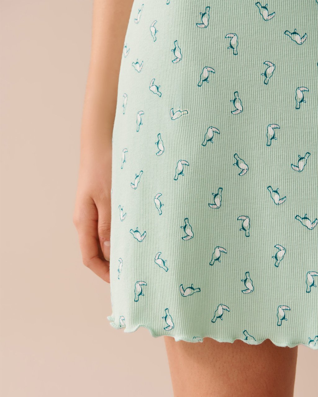 Яким би не був ваш вибір принта, ця нічна сорочка пом’якшить ваші літні вечори. Її шарм полягає в деталях: ребристій тканині та салатових краях.